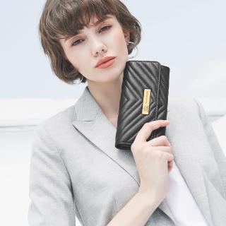 送包包【2R手工真皮】純粹羊皮Cotie斜菱紋長夾 經典黑MOMO購物網推薦