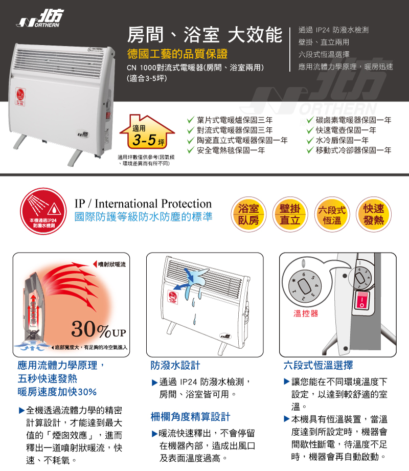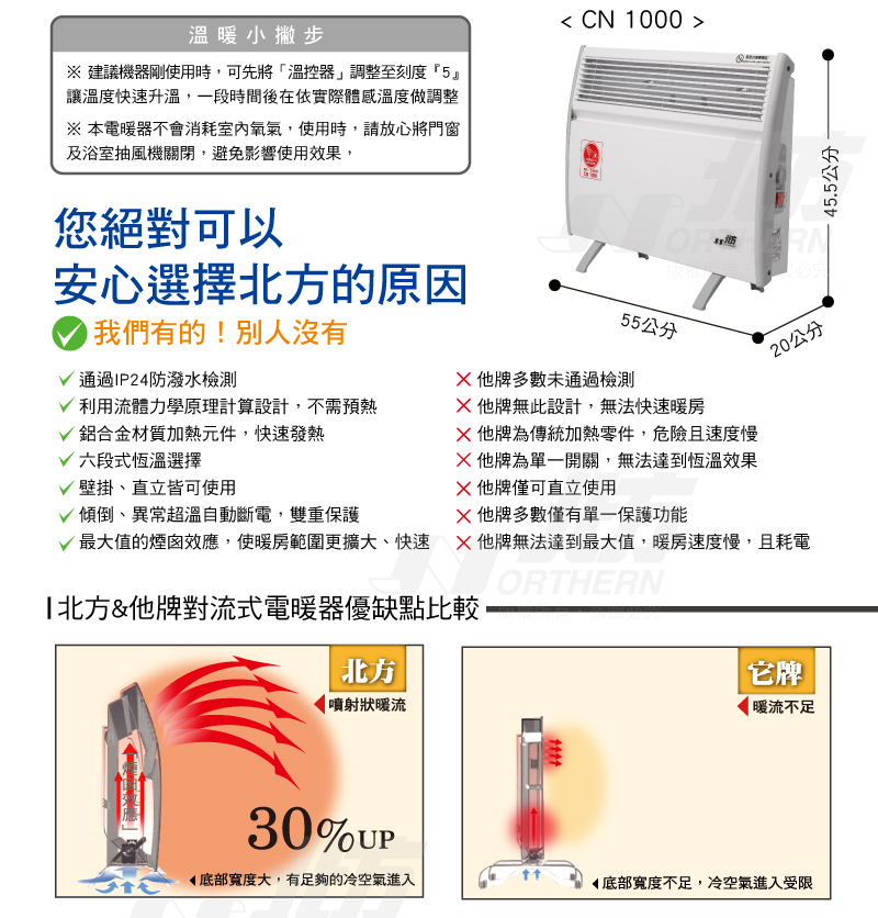設計驚嚇【北方】第二代對流式電暖器房間浴室兩用(CN1000)指南設計介紹電暖器