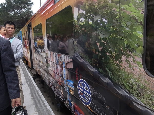 我往車廂看,看看阿嬌王氏夫妻是否在車廂中?就在我想再上到自強號時,看見楊慧貞,於是我大聲招呼他們,開心揮手,他們也大叫我們上車。