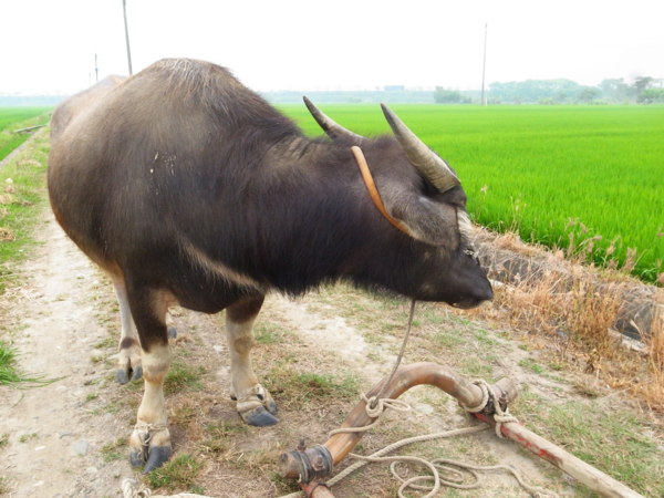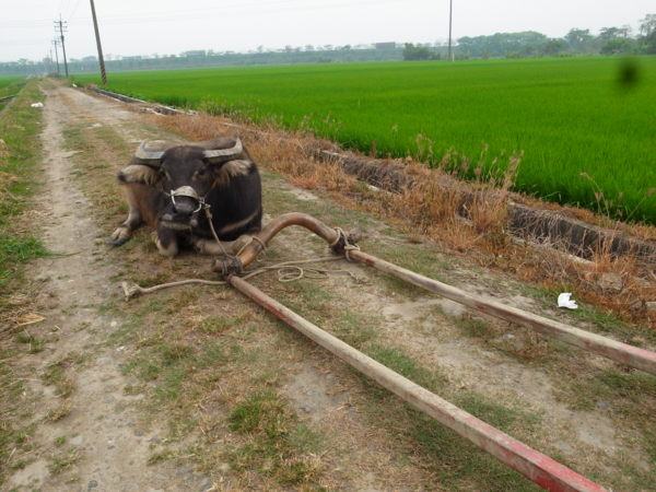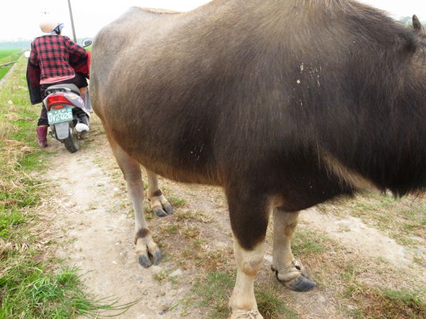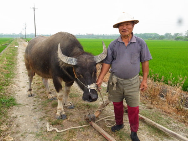 他又說記錄片那頭牛已經死了,因為老化。現在這頭才剛買兩年多,很乖很聽話。記得無米樂紀錄片中,文林伯踩在牛犁上抓著牛的尾巴犁田,最後他家那頭牛的尾巴還翹著水平線很久,很是好笑。
