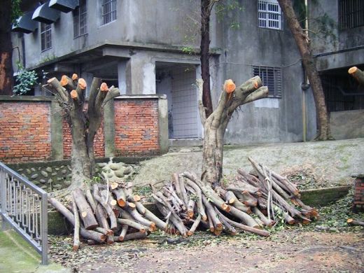 校園通常種樹的速度趕不上砍樹的速度。桃園縣多所學校常藉學童安全,攔腰砍伐校園原生種植物,致使原本綠意盎然、蟬鳴鳥叫的綠校園一夜間反成原生種植物的淒厲墳場。
