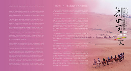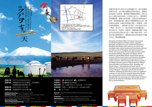 為讓民眾感受多元文化藝術之美,蒙藏委員會繼去年的「藏族風情在桃園特展」後,今年則以蒙古文化為主軸,特別策劃「蒙古的一天—蒙古民俗文物與攝影展」,冀望透過蒙古族生活常見文物及自然人文風情照片介紹蒙古文化。