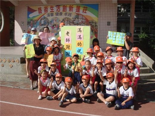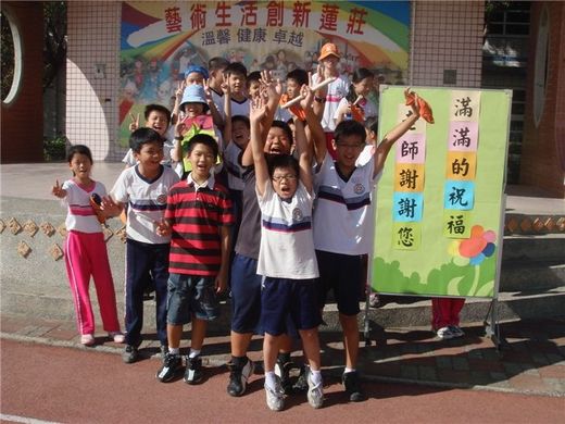 由蘆竹鄉新莊國小的學生自治鄉小朋友們發起的教師節感恩活動,滿滿的祝福,於教師節前夕的25日早晨,在兒童朝會的操場展開。
