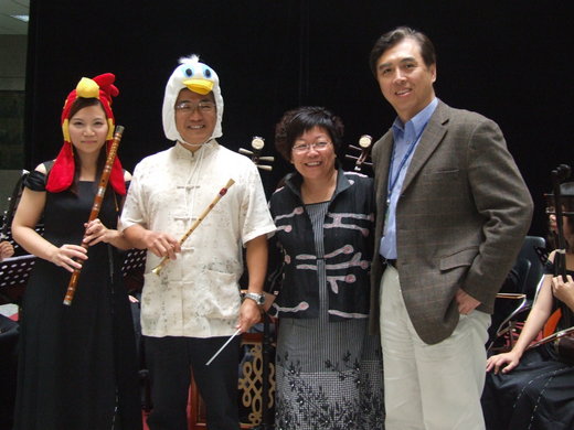 本次演出,特別邀請中外知名音樂家陳中申擔任指揮,跨界結合四把椅子劇團,共同演出經典作品音樂劇《雞同鴨講》,分別以笛子扮演公雞、管扮演鴨子,以音樂呈現兩種樂器的對話,詼諧逗趣。不但可聽到二胡會吟詩,以二胡旋律吟唱孟浩然的《春曉》;更有全國學生音樂比賽國小組絲竹指定曲《農村酒歌》與大專組國樂合奏指定曲《剽牛祭》等!