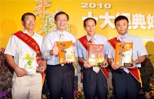 農委會指出,為推廣台灣種植的優質米,特別從民國92年推出全國冠軍米競賽,96年改為全國十大經典好米競賽,並從昨(24)日起至26日止,一連三天在台北市展演二館舉辦「2010台灣米博覽會」活動,推廣展銷各地農友精心裁種的優質米。另外,今天也舉辦十大經典好米的頒獎典禮,來自桃園縣大園鄉陳燕卿、新屋鄉曾雙浪和龍潭鄉朱泰源等三位農友,今年連手獲得「三冠王」的佳績。
