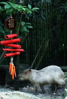 水豚啃咬吃紅蘿蔔的模樣,吸引許多新加坡民眾前去