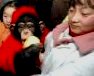 動物園裡的黑猩猩還會邊吃花生邊拿著春聯,向遊客