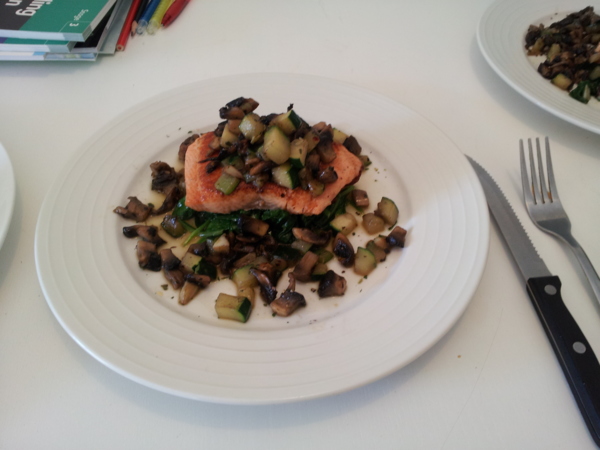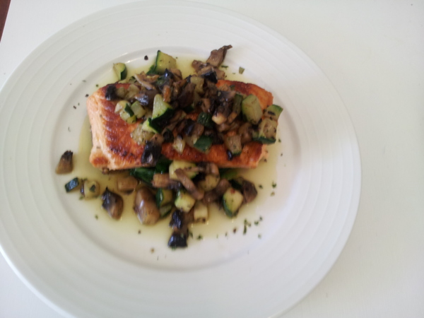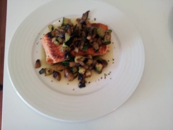 努兒秀法國菜 - 香煎鮭魚佐白醬 , with節瓜 , 蘑菇 , 菠菜