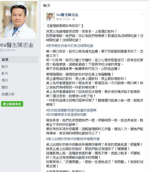 ●急診室醫生陳志金在FB上的po文