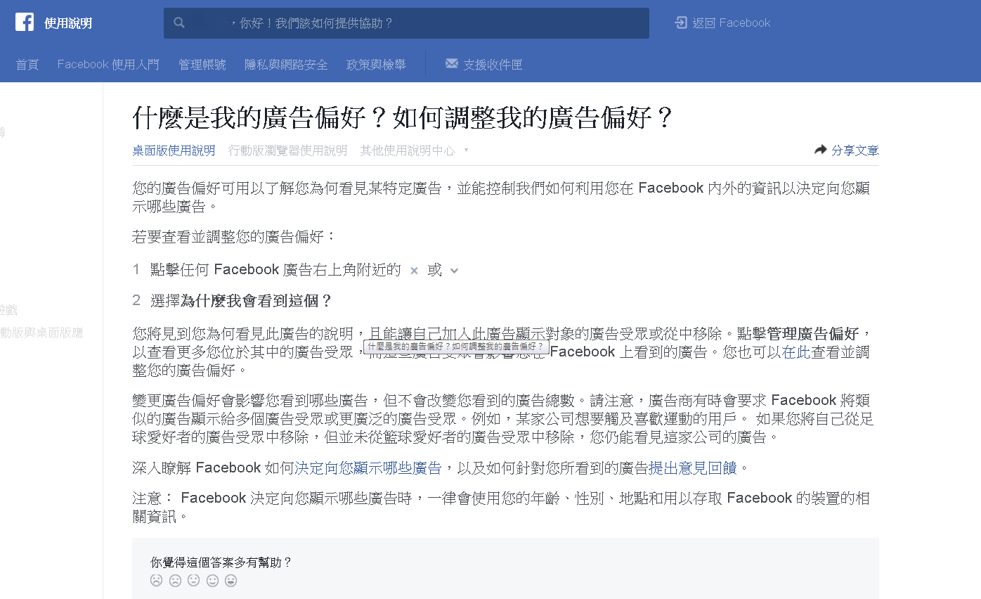 大家無聊也可以跟薯泥一樣去點點Facebook的使用說明,