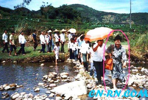 1990年,呂秀蓮(圈中人)走訪大陸,從北京一路走到福建漳州南靖縣祖居地,儘管祖居在荒郊野外,但呂秀蓮踩著原鄉的土地,神采飛揚。呂秀蓮在大陸認識新朋友,拍照留念,開心極了。(台資深媒體人徐宗懋攝 中評社圖)