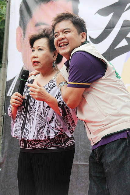 被主持人林國慶尊稱為總統的黃越綏老師一上台,也贏得熱烈的掌聲,黃越綏老師說莊瑞雄的場他一定要來,雖然他現在是台灣的人氣王,但選舉不能輕忽越被看好越容易被犧牲掉,所以大家要努力幫莊瑞雄拉票。黃老師說今天如果蘇貞昌當選最該感謝有二人,一個是鄭弘儀一個就是莊瑞雄。