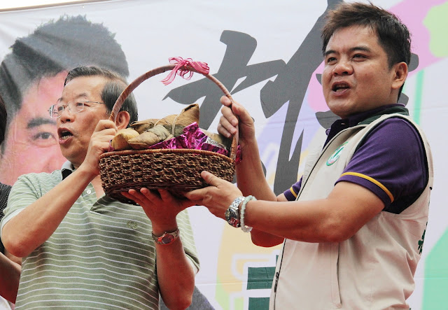 市長候選人蘇貞昌致詞時呼籲選民應該支持莊瑞雄,因為若不是莊瑞雄在議會質詢花博,現在大家不知道為什麼地瓜葉、九層塔會這麼貴。