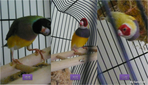 大花與小花滿1歲半了,從小至醫院看到他們時便是活潑到不行,沒想到一直沒變! Sunshine是在他們4個月時帶回家陪伴妮妮的,當時因羽毛色彩未長好,且較難分辨,便先以大花小花來稱呼了!