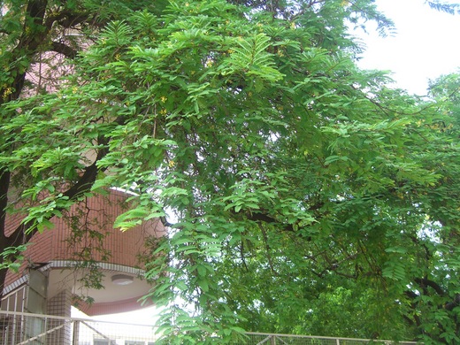 常綠喬木。偶數羽狀複葉;小葉 20- 40 枚。總狀花序。花黃色:萼筒倒圓錐形;花瓣 3 枚,餘退化。子房與萼筒合生。莢果長橢圓形。