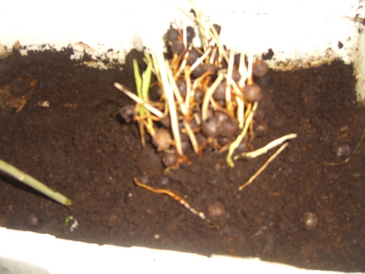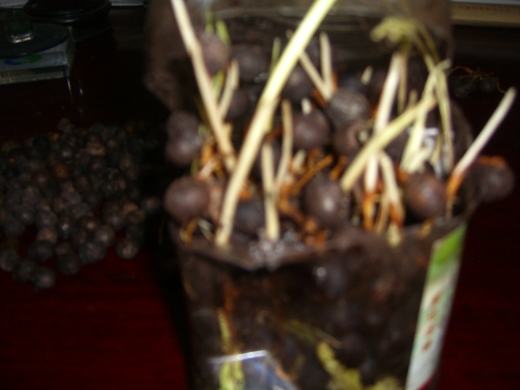 99年檢的種子 放置密封塑膠瓶內 約1年期間 居然發芽了 趕緊取出入土為安