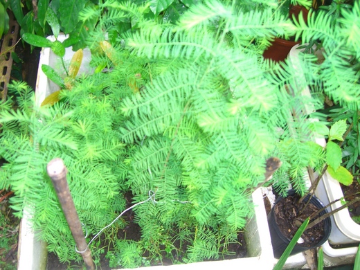 周圍有瘤狀或膝蓋狀的呼吸根由地面上竄出。落羽松,來自北美,葉序二列狀叢生,單葉,狹線形。秋冬季節,葉子掉得意乾二淨,看起來像枯死一般。葉色呈淡黃色,小枝互生。花期為晚春初夏,花小或不明顯,通常採用播種法來繁殖。是屬於觀果植物,果色為濃紅、暗紅至紫褐色,繁殖上可採用播種或阡插兩種方法。