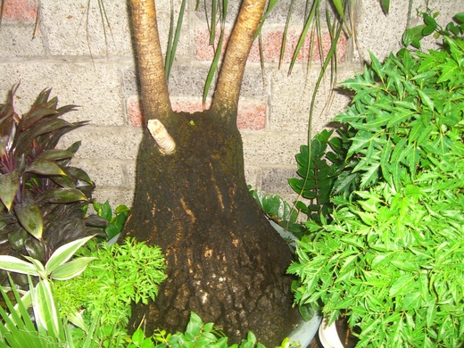 常綠小喬木,單幹,下細中粗上變細。褐色有環紋狀,甚顯著。全株高可達 3 公尺。