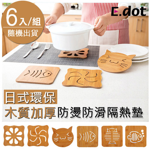 【E.dot】日式環保木質加厚防燙防滑隔熱墊(6入)