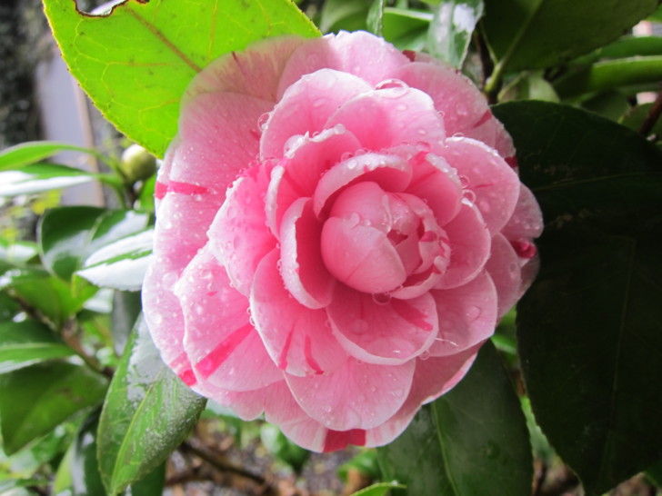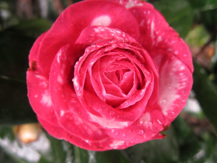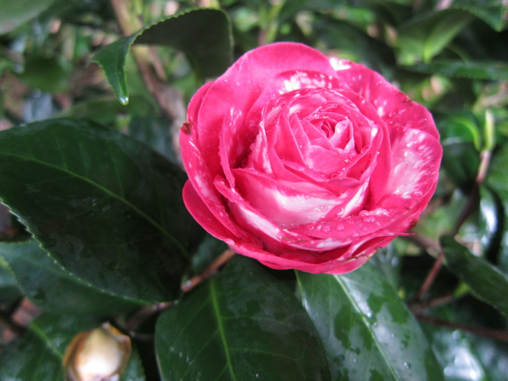 茶花的品種繁多,就花型分類來看,就有單瓣花型、半重瓣花型、完全重瓣花型、牡丹花型、玫瑰重瓣花型、銀蓮花型;如果沒錯,上面這朵美麗的雙色茶花,應該是完全重瓣型的茶花,因為“花瓣非常多層,呈緊密規則排列,待花謝時也不見花蕊”.......