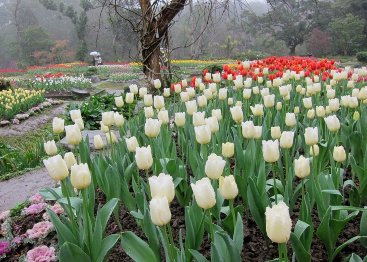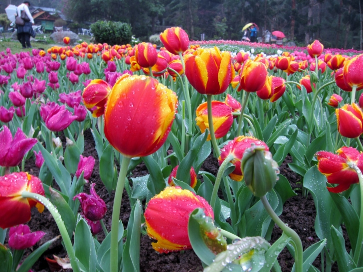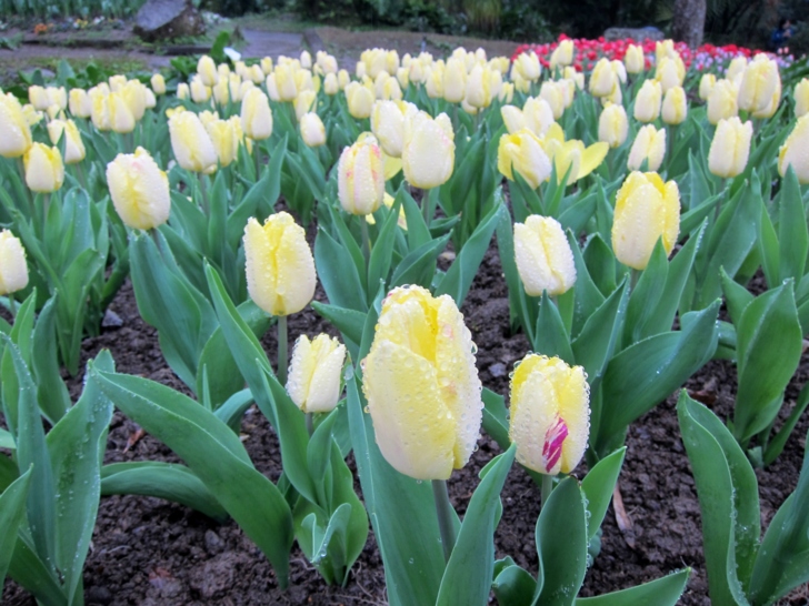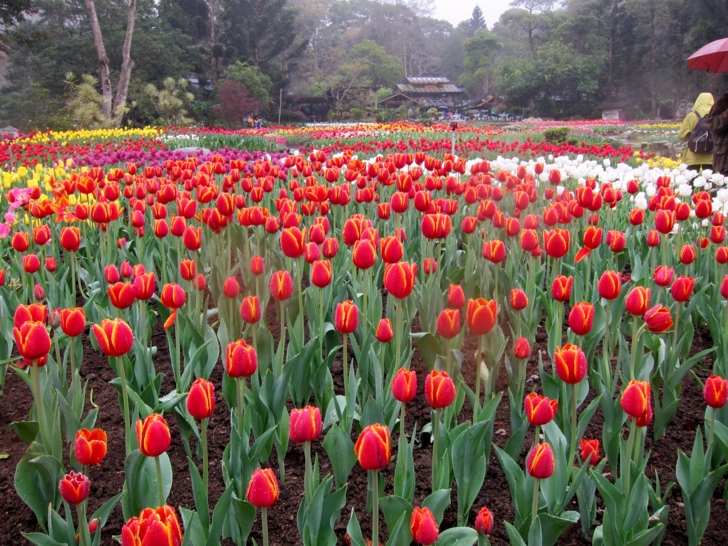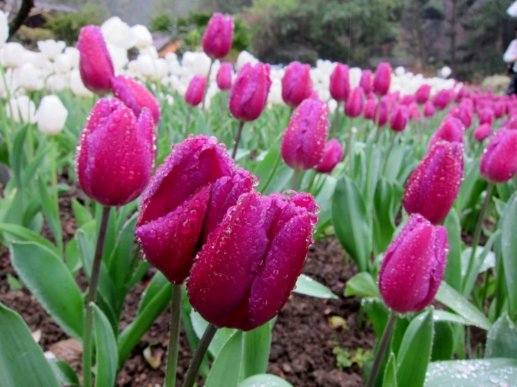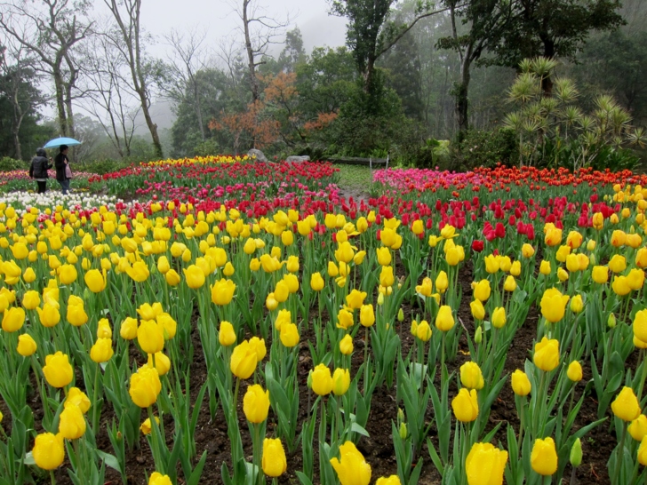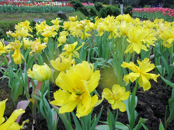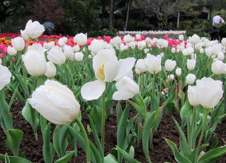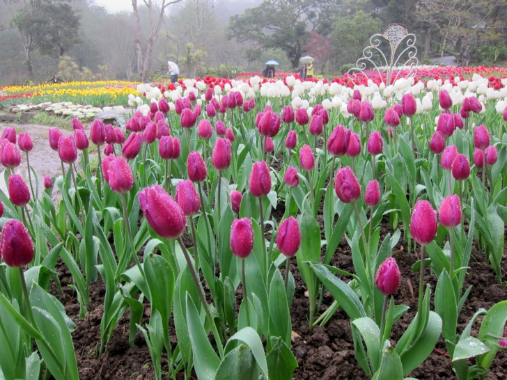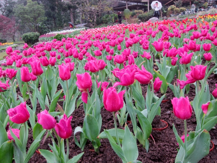 有點失望不是因為天雨,而是因為看過花博的鬱金香花海,尤其因為沒有看到紅得發紫的黑色鬱金香,所以有點掃興;雖然沒有預期的驚艷,但還是很高興去了,...........因為,現在看起來,這些鬱金香花海,還是很美的啦!