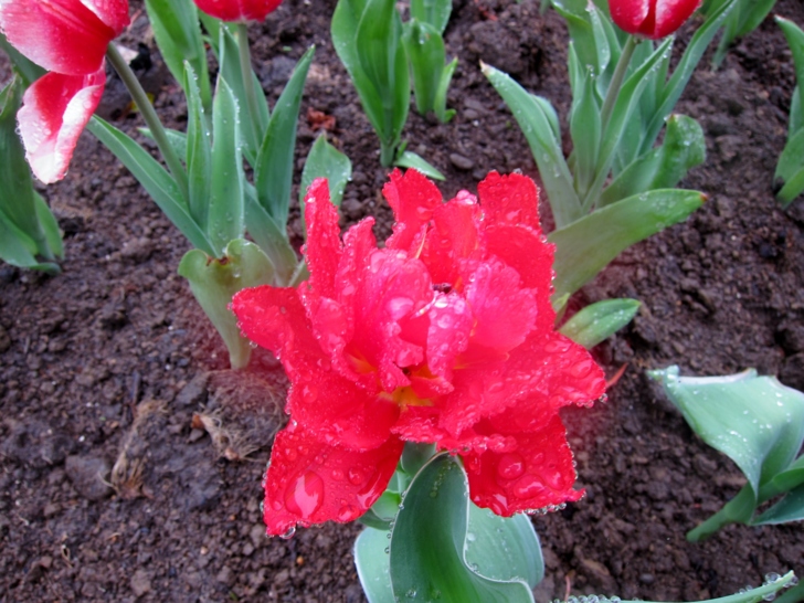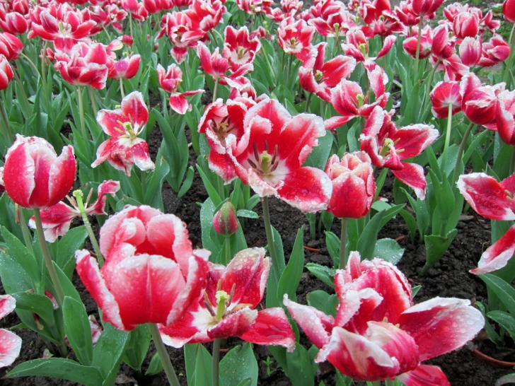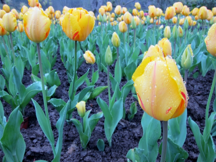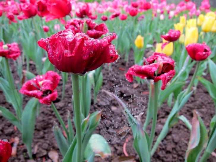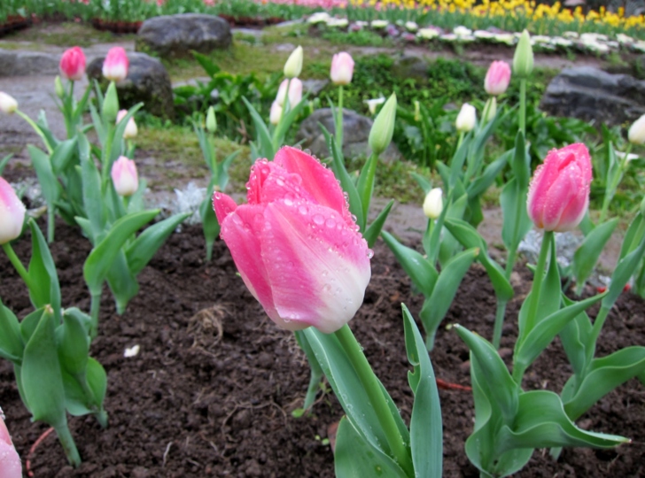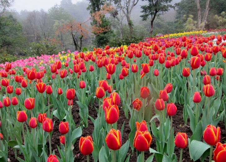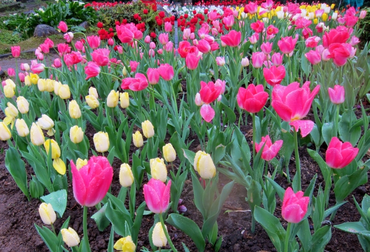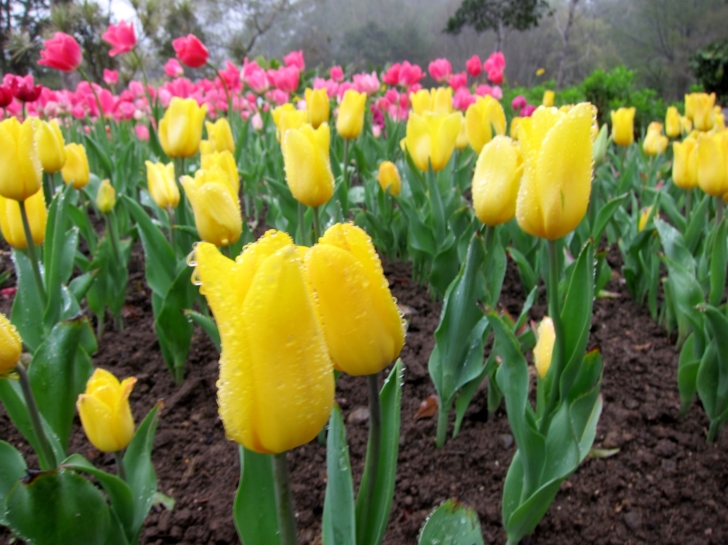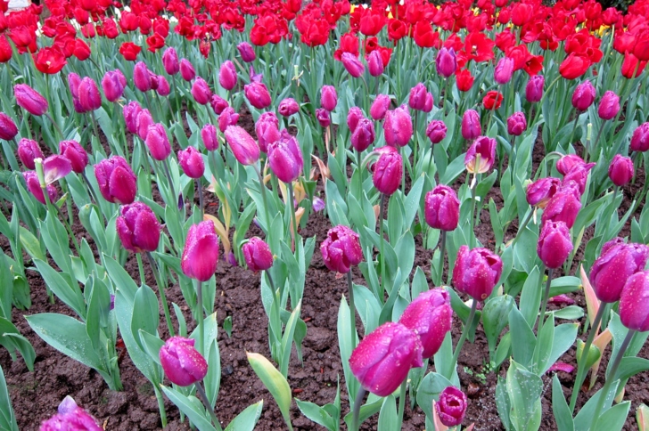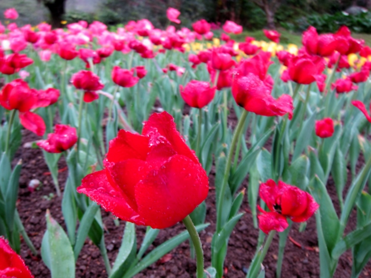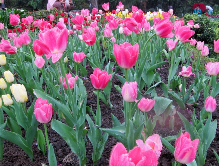 有點失望不是因為天雨,而是因為看過花博的鬱金香花海,尤其因為沒有看到紅得發紫的黑色鬱金香,所以有點掃興;雖然沒有預期的驚艷,但還是很高興去了,...........因為,現在看起來,這些鬱金香花海,還是很美的啦!