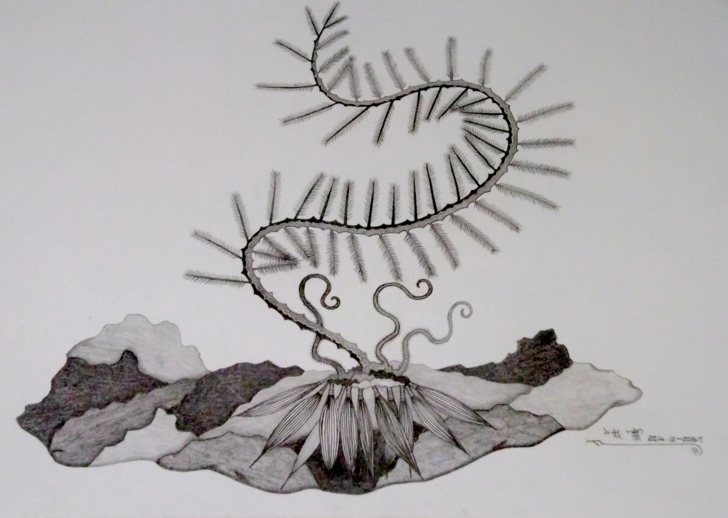 峨塞的作品,頗為奇特。其中之一,名為病毒,我看到的是〈寒武紀〉。祝福。啊 寒武紀大爆發啊?
