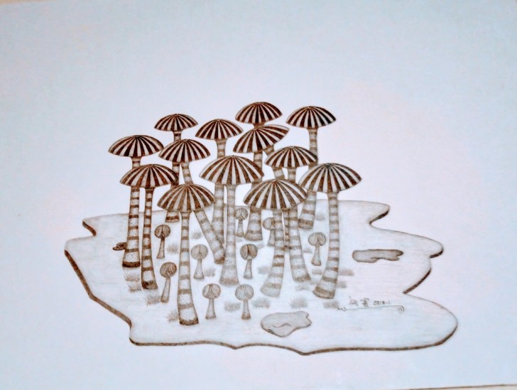 而是僅憑童年的觀察和記憶 揣摩繪製的紀錄圖像