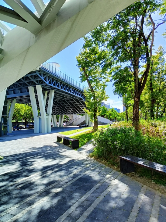 我特別喜歡在您的「圖」裡「行」間 倘佯,那些地方那些現在呈現的過去與未來。意思是,譬如您這今日南港讓我萬分欣慰!因為自己曾參與早期都市計畫與設計準則,譬如那空橋之必要,輕巧流形之必要,濃密植栽之必要等等…