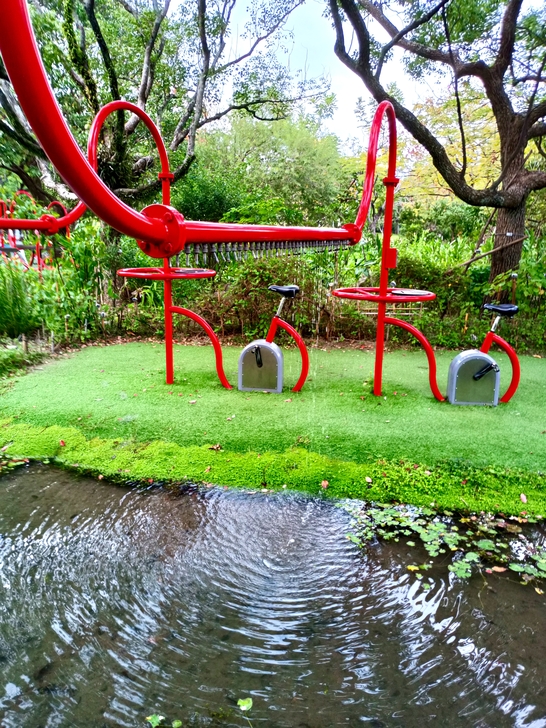 這個“活水飛輪”是仿自行車公路騎乘設計