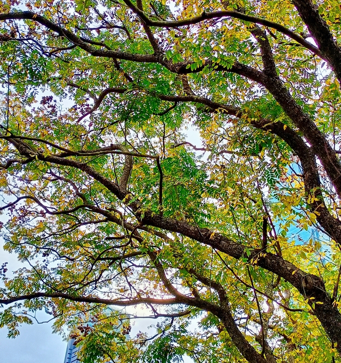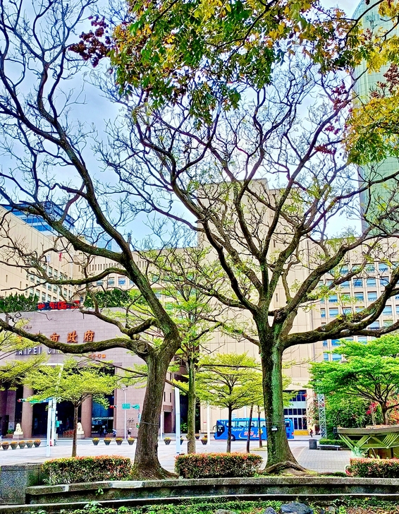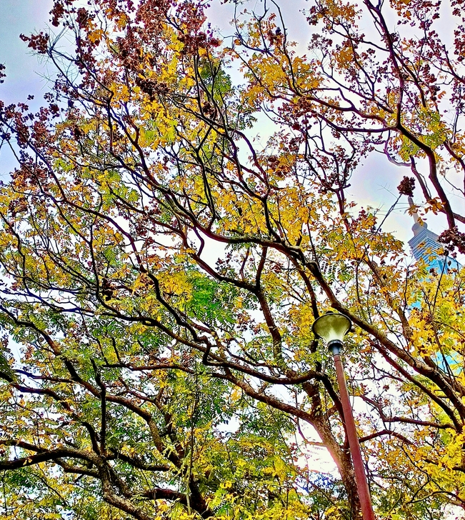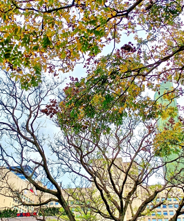 走過小葉欖仁 苦楝和台灣欒樹的樹下