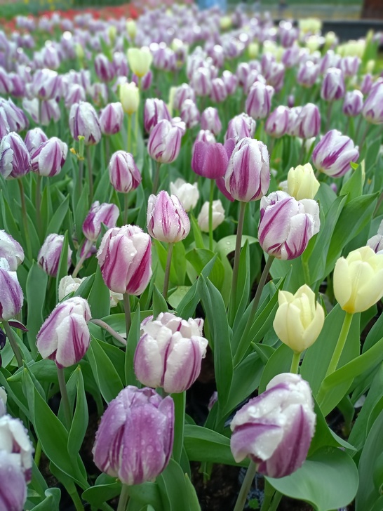 春雨綿綿賞花人卻步 鬱金香帶雨楚楚動人