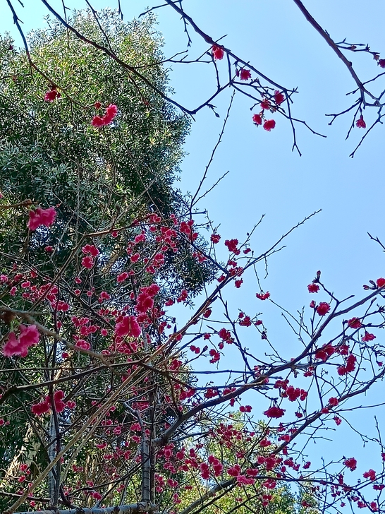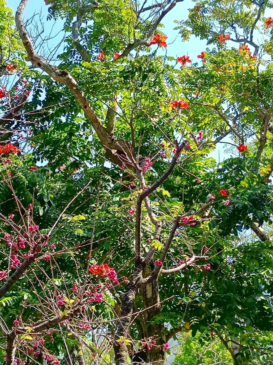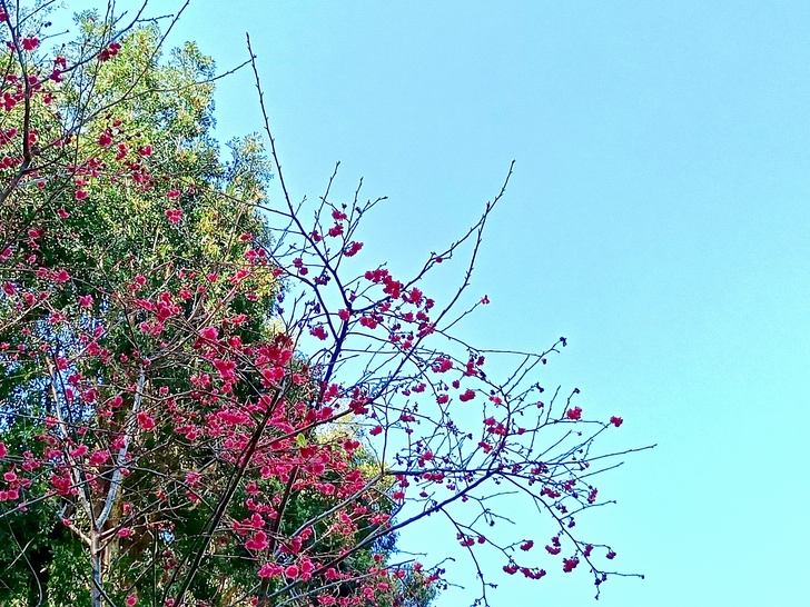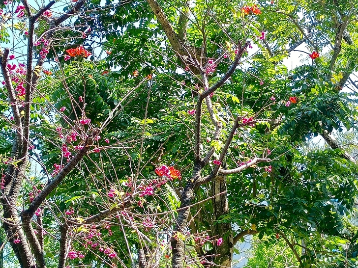 於是 這櫻花與火焰木欣然聯手