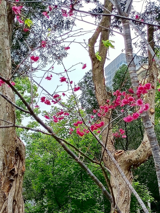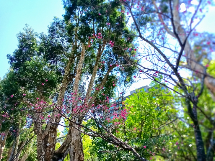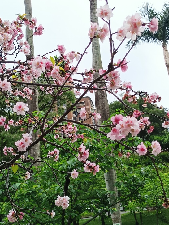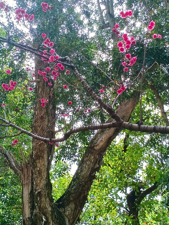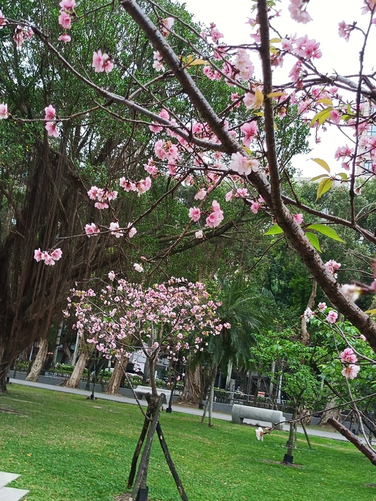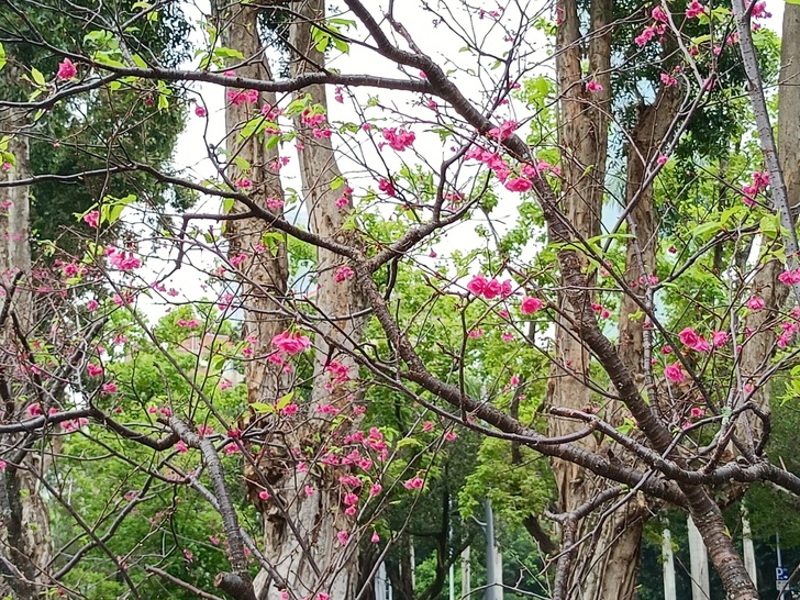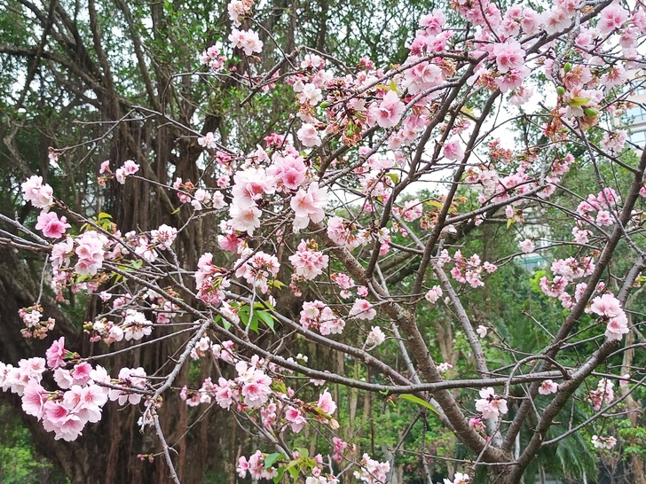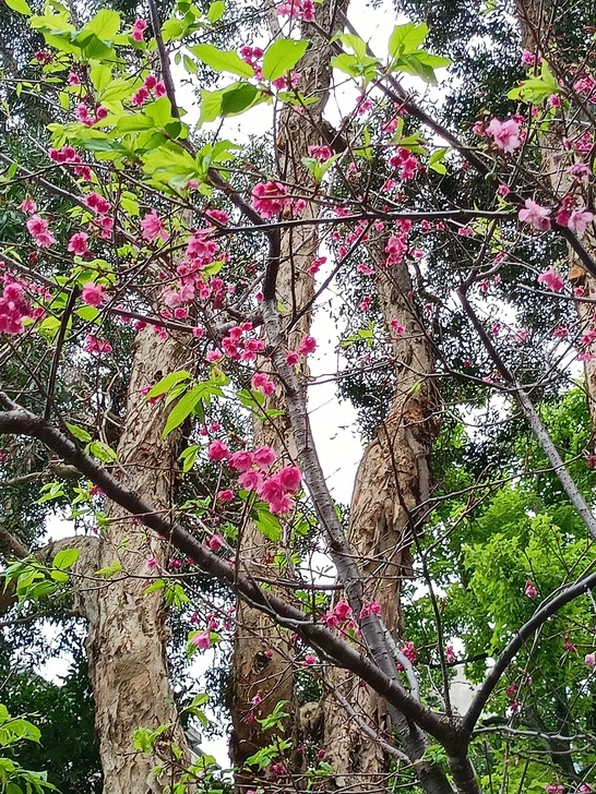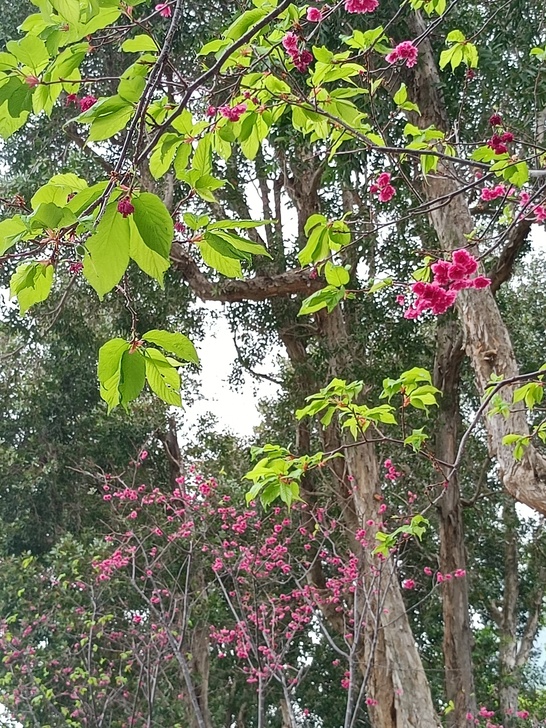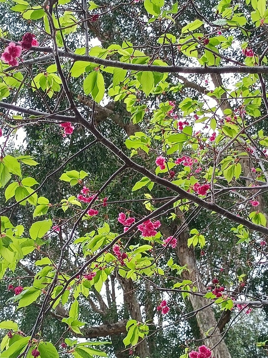又歡天喜地的開了一樹嫩嫩的粉紅.....