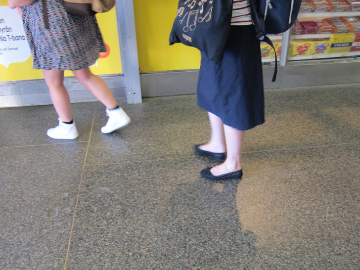 這是在地鐵站外拍的,是一個急著回家的年輕媽媽嗎?
