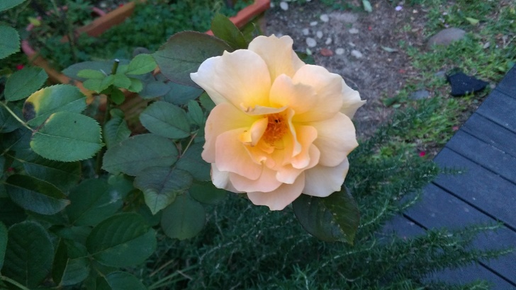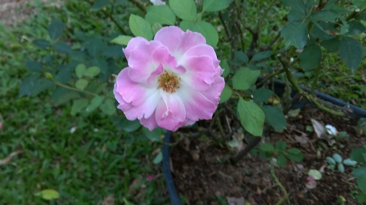 粉橙色蕊心黃 圓瓣平開 微香