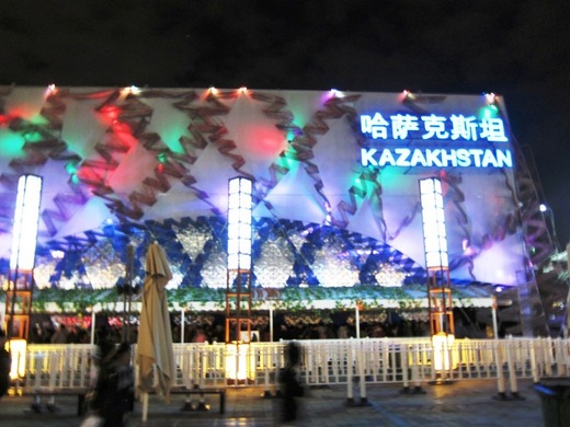 哈薩克斯坦國家館的建築,風格獨具; 尤其在夜間,更顯得無比美麗;