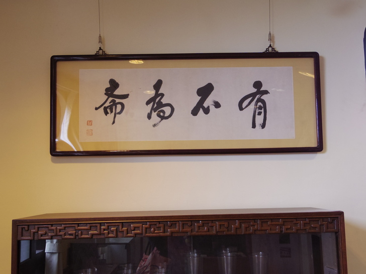 餐廳牆上掛著林語堂先生手書的“有不為齋”四字,