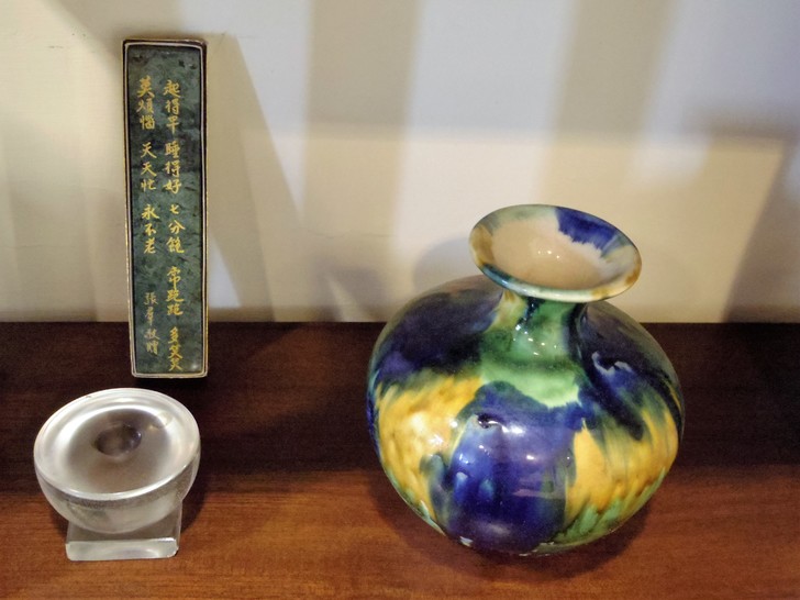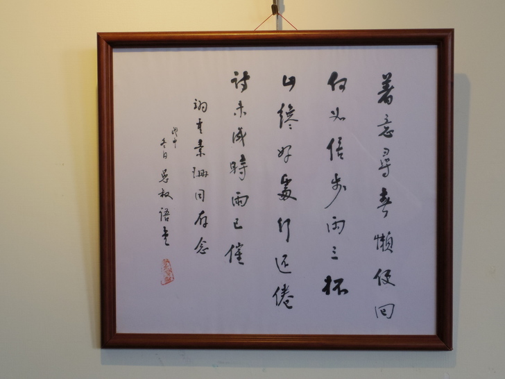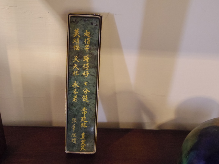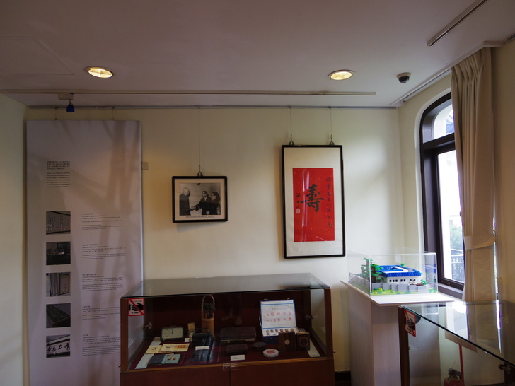 生日時蔣總統贈的壽字......櫃子裡展示的是林先生用過的文房四寶;