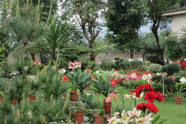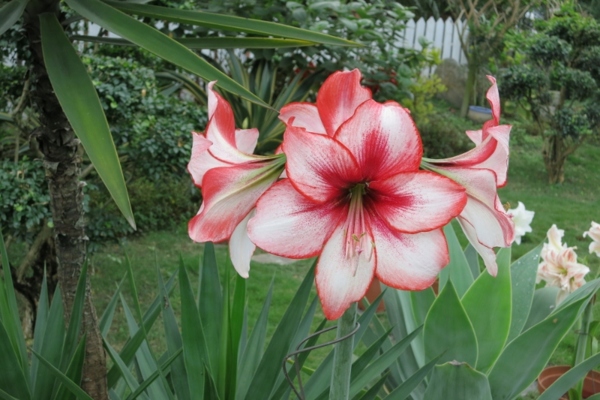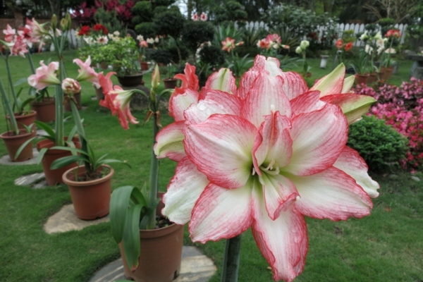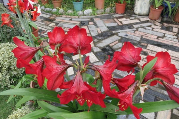 正值春天,正是孤挺花開花的季節,駱老師的花園就成了孤挺花的世界了,