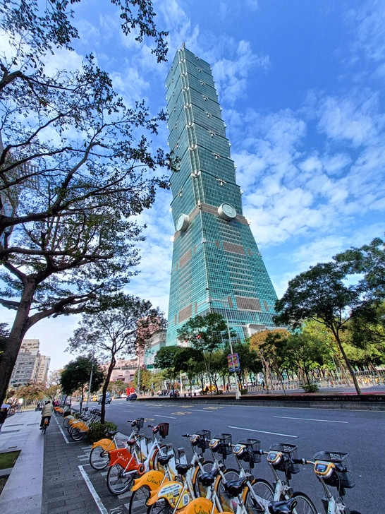 第一次在信義路上拍101 那一天 是個有燦爛陽光的日子...... 在藍天白雲的襯托下 拍出的照片 效果不錯 也讓人感到心情愉悅..... 已經有一整年沒出國門旅行了 拍來拍去 多在東區取...