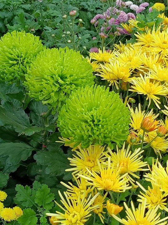 這綠色的菊花是綠絲菊~ 跟那小小可愛的 像個小繡球的綠菊 是同樣的 不過這種花型更大 呈現的風采與氣質 也大異其趣..... 沒有研究 不知為何同名同姓 是一家人嗎?或者只是遠房的親戚呢? 會不會是...