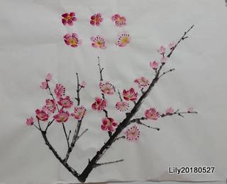 今天分享的時候,書友說梅花花蕊排得太整齊了,應該有高低前後大小的分別。很高興有人指出我的缺點,讓我可以立即改正。
