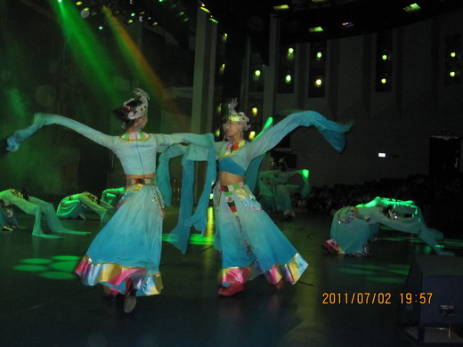 因繞道今天除了上衛生間及吃午餐,其餘時間都在車上度過,坐車坐到屁股又麻又痛,真累!還好因為當天下了一些雨,在往九寨溝沿途的江面上煙霧瀰漫~美極了,算是彌補了當天的辛勞。我拿著相機狂拍,想彌補一下缺憾,無奈是在車上車子又是在行進中,拍出來的效果相當差~感覺像是~不會駛船嫌溪彎喔!(台灣俗語)晚上入宿九寨溝喜來登酒店,晚飯後去觀賞酒店安排的藏羌歌舞秀,雖不是很精采,但在今天的行程裡還算是有趣的!