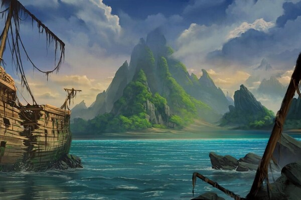 另一塊深青有黑花紋色的圓玉石,戴在手腕,有天出現靈視 : 一座墨綠色的小島,山面有金黃色薄片閃爍,一陣風將其通通吹落海中,變成黃草紙,消失了。山呈現翠墨綠色,極幽美。讓人想到英國冒險小說中的《金銀島》(Treasure Island)。