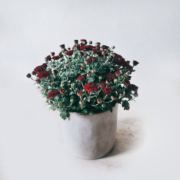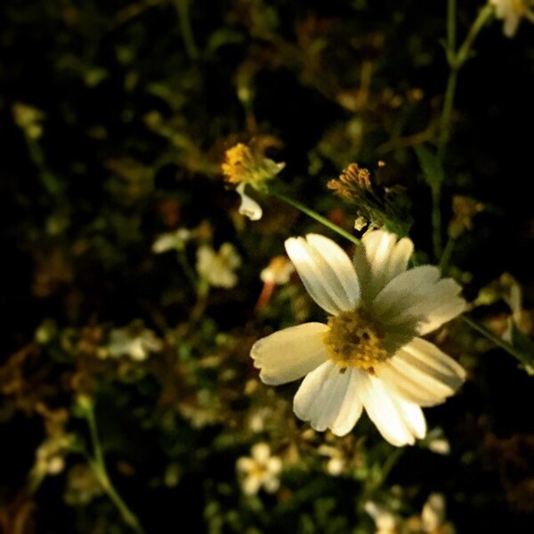 菊花的主題在詩集<馴順的黑水仙>中出現過兩次,較近的一次是生病初期寫的。都是寫雛菊。生病時也養花,買回一盆很大的叢菊,開的是紫紅色的小菊花。開滿一盆。夜裡失眠,從房裡跑出到後陽台,觀看這盆菊花,心裡似乎沒想到甚麼,大概關在房裡太久,無法成眠,出來透氣。心情也像叢菊一樣,開滿卻靜閉著。後來不知何時寫了首<菊窺>,是根據這夜的觀菊寫的。不是即景寫成的。請賞讀