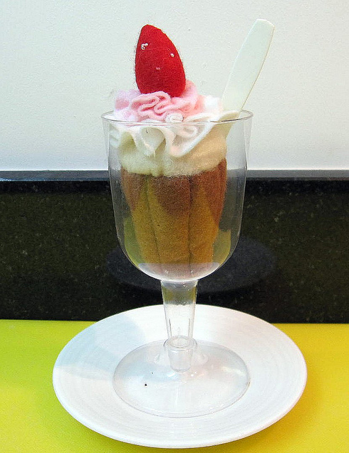 初次做,完工後發現杯身太長。為了掩飾不完美把蛋糕放入塑膠酒杯內居然有模有樣,自成另一種點心。