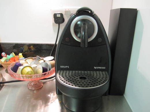 我家的espresso 機。簡約型,咖啡很棒,臺灣也有進 (Nespresso)。圖3