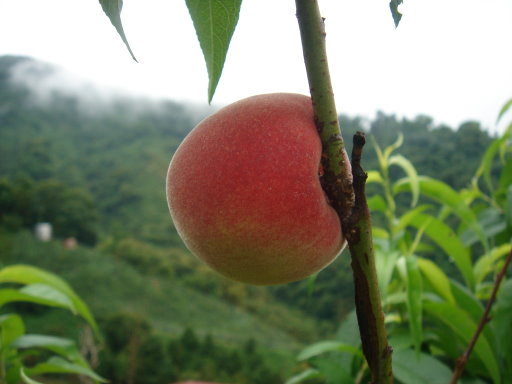 今日下著毛毛雨,工人便不上山工作,現正是桃子採收的季節,必須