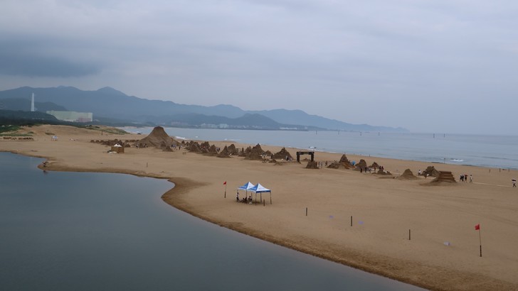 遠方是龍門大橋,下方的步道應該可以走到龍門大橋,因沙雕展設了門禁。